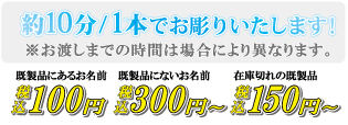 ※すべて税込価格 ※名字以外の彫刻は約10分/1本いただきます。